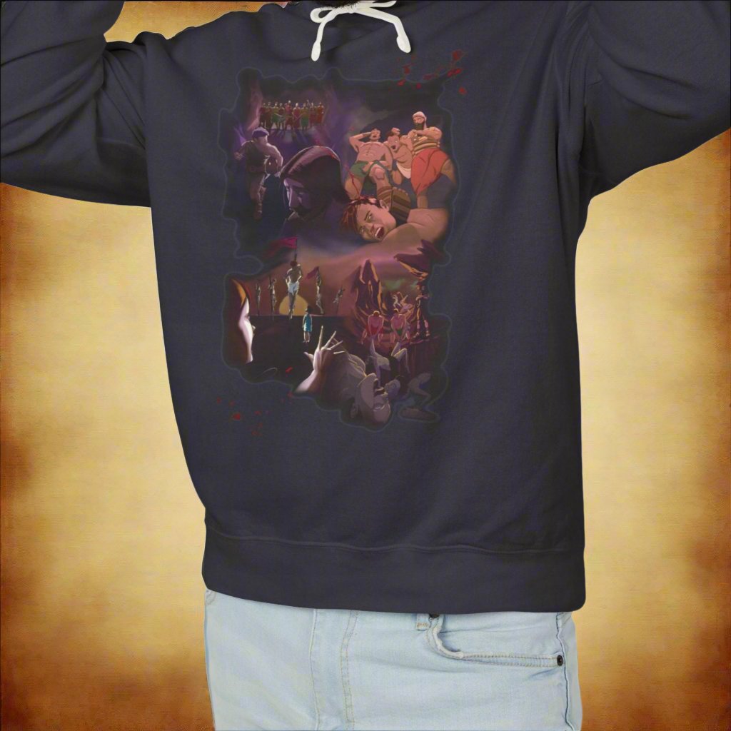 Experience the power and significance of scripture with our "Execution of the Amorite Kings" hoodie. From the Book of Joshua, Chapter 10 Verse 25, this shirt depicts Joshua's courage and devotion to his mission. With BRUTAL imagery and thought-provoking symbolism, this hoodie is sure to spark conversations and inspire others.
